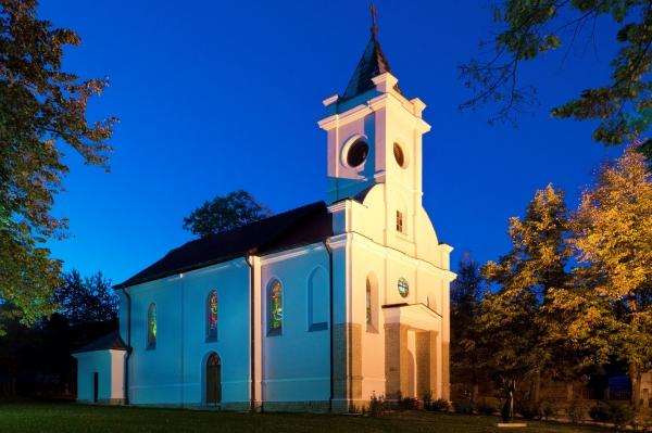 Drvena crkvica, posvećena Uznesenju Blažene Djevice Marije, bila je podignuta 1854. godine. No, nedugo zatim (1890.) izgrađena je nova, sadašnja crkva. Koncem prošloga stoljeća crkva je u više navrata obnavljana. Prvotni plan predviđao je Crkvu s dva tornja i znatno prostraniju. No, zbog ekonomskih razloga odustalo se od toga.